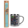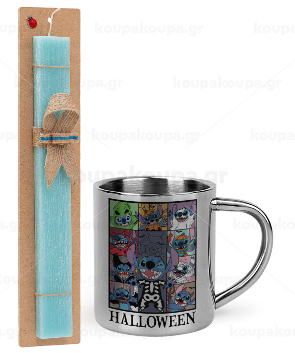 Stitch Halloween, Easter Set, metallic thermal cup (300ml) & aromatic flat Easter candle (30cm) (TURQUOISE)