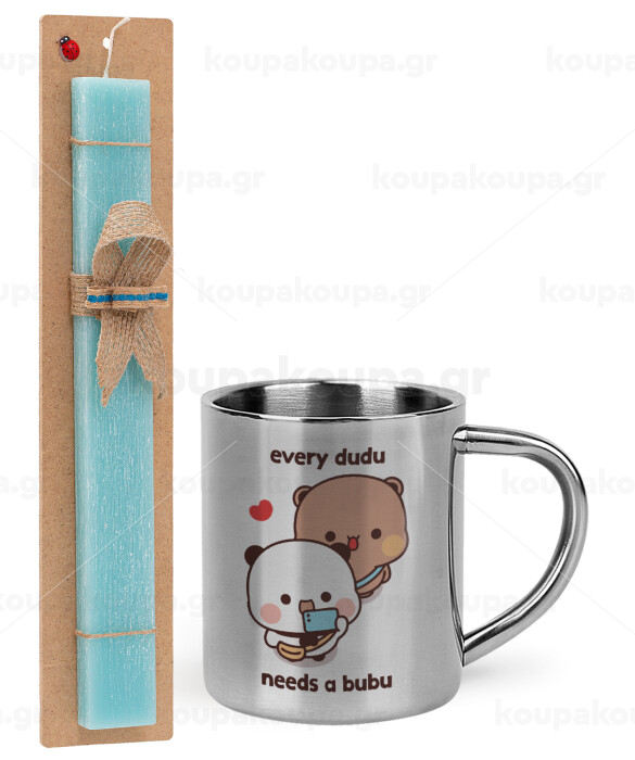 Every Dudu needs a bubu, Easter Set, metallic thermal cup (300ml) & aromatic flat Easter candle (30cm) (TURQUOISE)