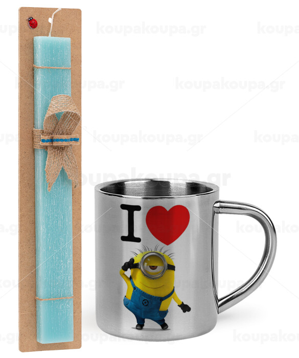 I love by minion, Easter Set, metallic thermal cup (300ml) & aromatic flat Easter candle (30cm) (TURQUOISE)