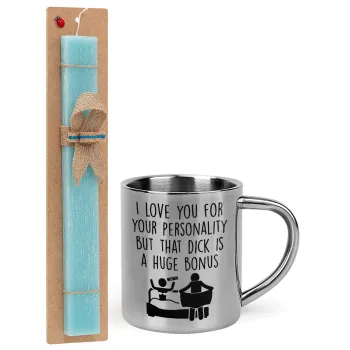 I Love You for Your Personality But that D... Is a Huge Bonus , Easter Set, metallic thermal cup (300ml) & aromatic flat Easter candle (30cm) (TURQUOISE)