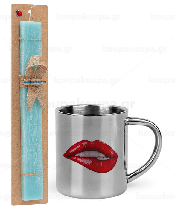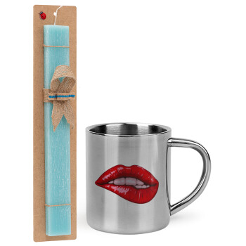 Lips, Easter Set, metallic thermal cup (300ml) & aromatic flat Easter candle (30cm) (TURQUOISE)