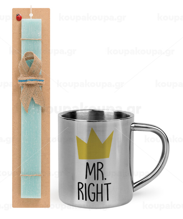 Mr right, Easter Set, metallic thermal cup (300ml) & aromatic flat Easter candle (30cm) (TURQUOISE)