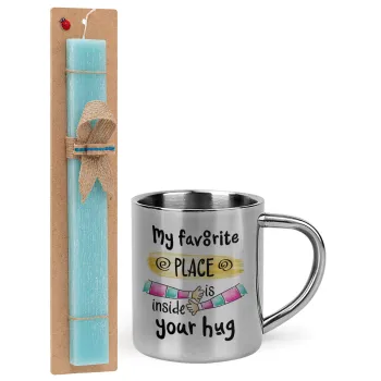 My favorite place is inside your HUG, Easter Set, metallic thermal cup (300ml) & aromatic flat Easter candle (30cm) (TURQUOISE)
