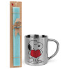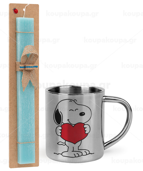 Snoopy takemy heart, Easter Set, metallic thermal cup (300ml) & aromatic flat Easter candle (30cm) (TURQUOISE)