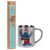 Stitch heart, Easter Set, metallic thermal cup (300ml) & aromatic flat Easter candle (30cm) (TURQUOISE)