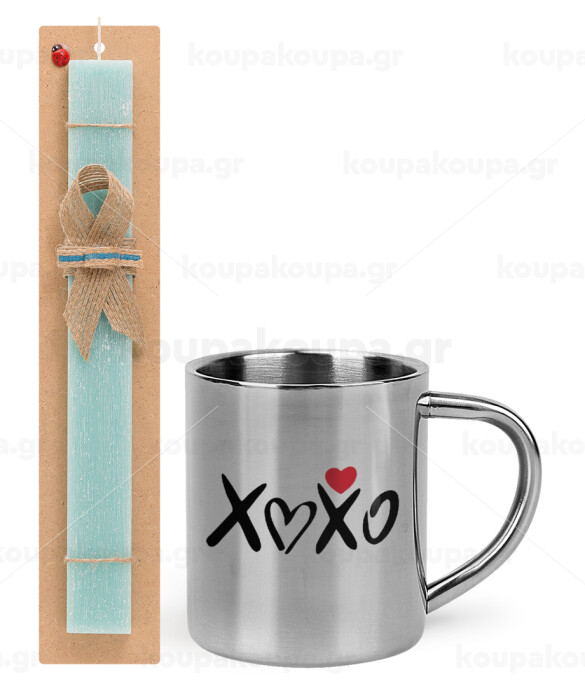 xoxo, Easter Set, metallic thermal cup (300ml) & aromatic flat Easter candle (30cm) (TURQUOISE)
