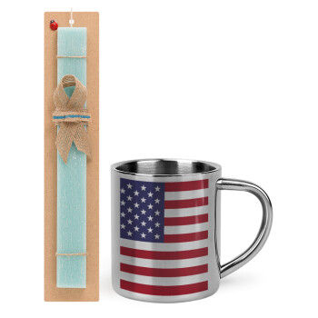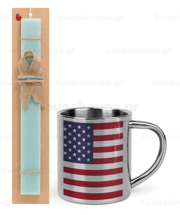 USA Flag, Easter Set, metallic thermal cup (300ml) & aromatic flat Easter candle (30cm) (TURQUOISE)