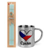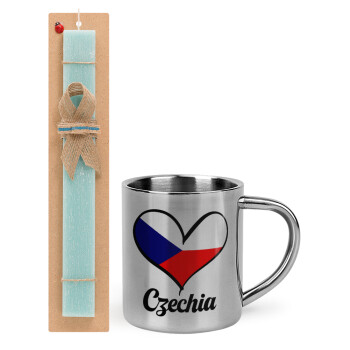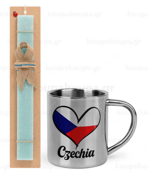 Czechia flag, Easter Set, metallic thermal cup (300ml) & aromatic flat Easter candle (30cm) (TURQUOISE)