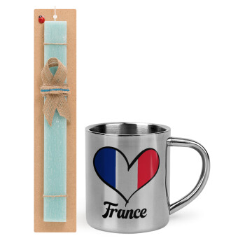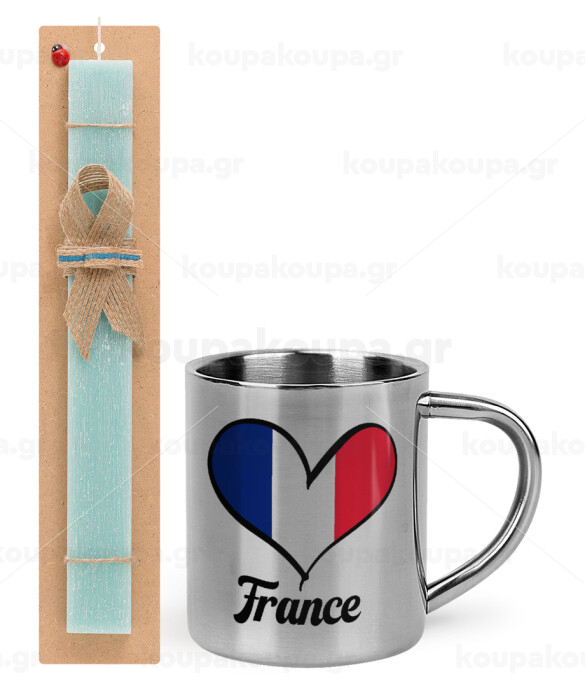 France flag, Easter Set, metallic thermal cup (300ml) & aromatic flat Easter candle (30cm) (TURQUOISE)