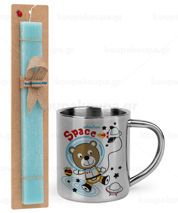 Kids Space, Easter Set, metallic thermal cup (300ml) & aromatic flat Easter candle (30cm) (TURQUOISE)