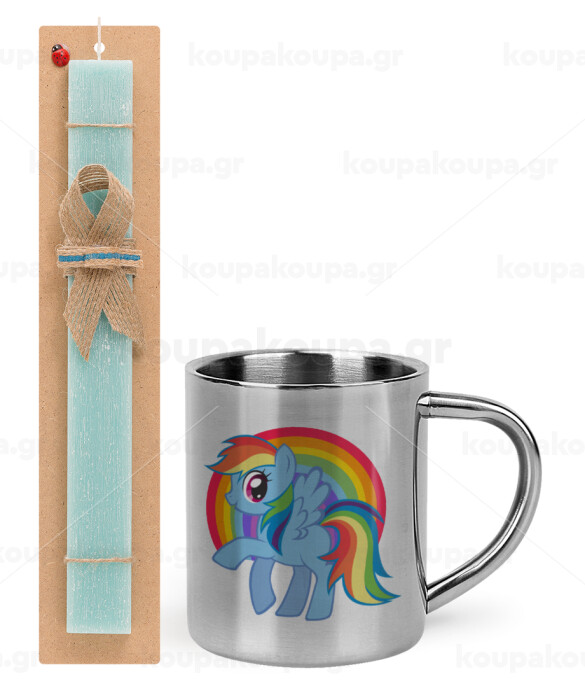My Little Pony, Easter Set, metallic thermal cup (300ml) & aromatic flat Easter candle (30cm) (TURQUOISE)