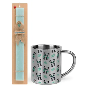 Panda, Easter Set, metallic thermal cup (300ml) & aromatic flat Easter candle (30cm) (TURQUOISE)
