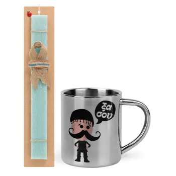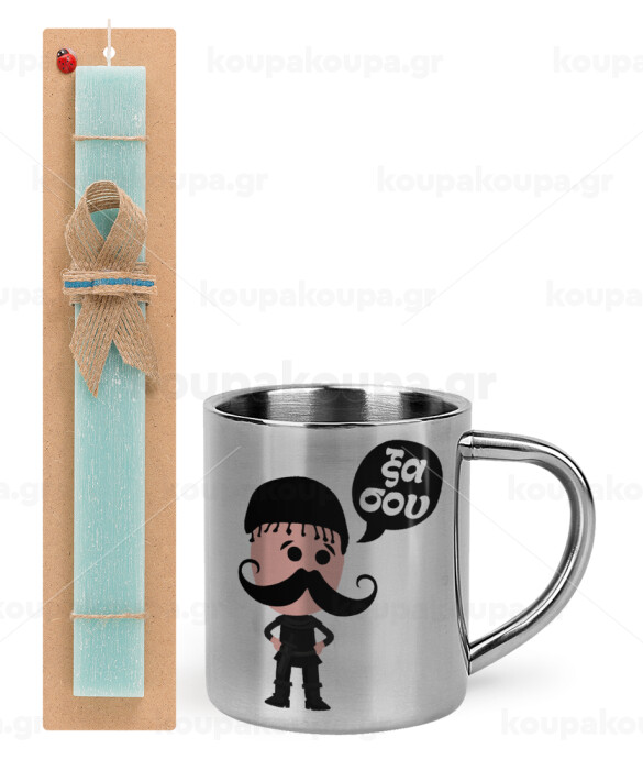 Κρητικός "Ξα σου", Easter Set, metallic thermal cup (300ml) & aromatic flat Easter candle (30cm) (TURQUOISE)