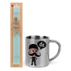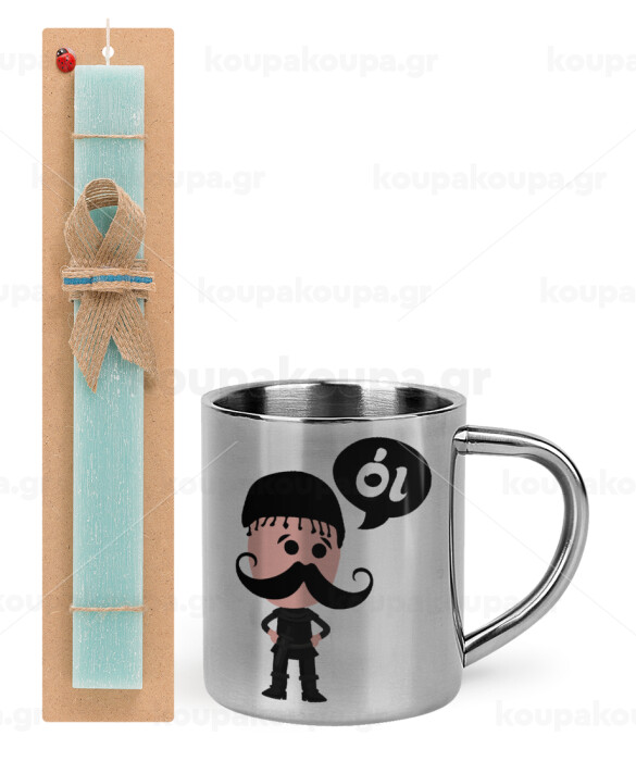 Κρητικός "Οι", Easter Set, metallic thermal cup (300ml) & aromatic flat Easter candle (30cm) (TURQUOISE)