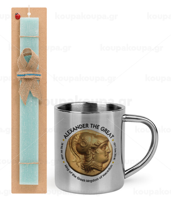 Alexander the Great, Easter Set, metallic thermal cup (300ml) & aromatic flat Easter candle (30cm) (TURQUOISE)