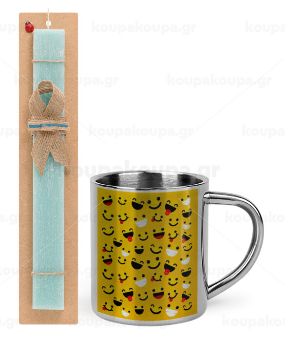 Smilies , Easter Set, metallic thermal cup (300ml) & aromatic flat Easter candle (30cm) (TURQUOISE)