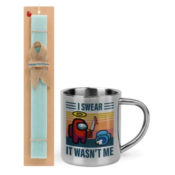 Among us, I swear it wasn't me, Easter Set, metallic thermal cup (300ml) & aromatic flat Easter candle (30cm) (TURQUOISE)
