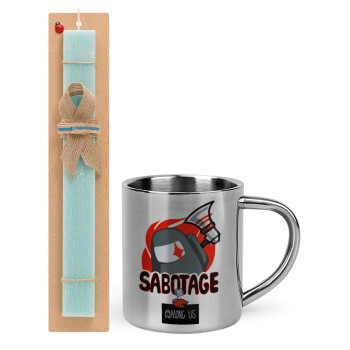Among US Sabotage, Easter Set, metallic thermal cup (300ml) & aromatic flat Easter candle (30cm) (TURQUOISE)