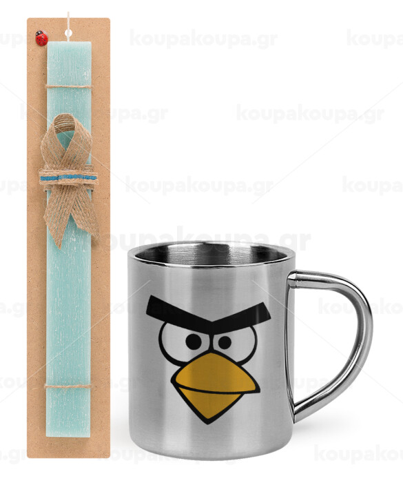 Angry birds eyes, Easter Set, metallic thermal cup (300ml) & aromatic flat Easter candle (30cm) (TURQUOISE)
