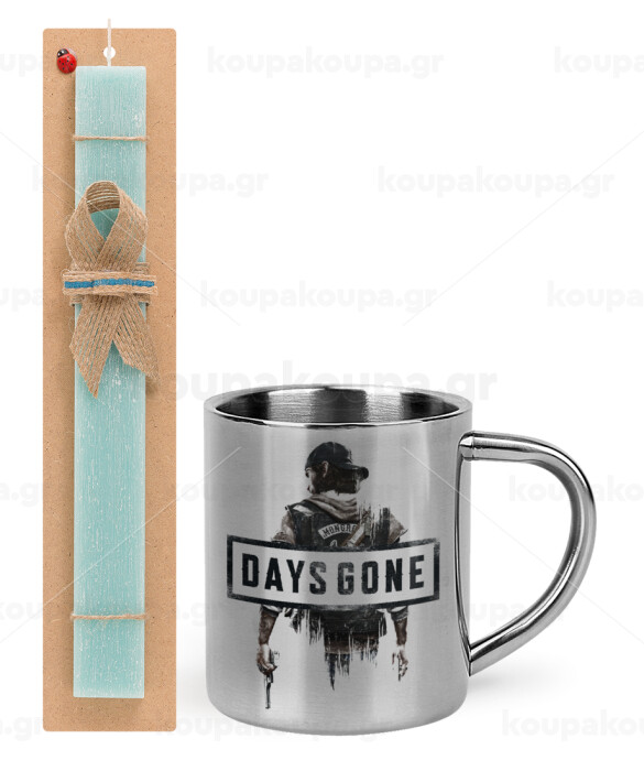 Day's Gone, Easter Set, metallic thermal cup (300ml) & aromatic flat Easter candle (30cm) (TURQUOISE)