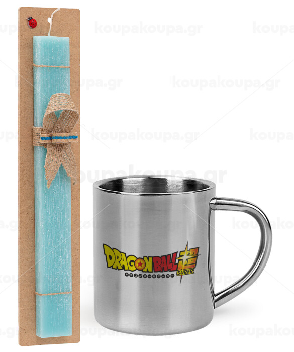 DragonBallZ, Easter Set, metallic thermal cup (300ml) & aromatic flat Easter candle (30cm) (TURQUOISE)