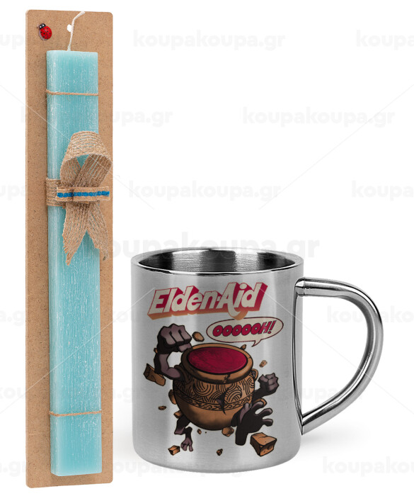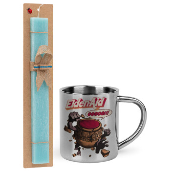 Elden-Aid, Elden Ring inspired , Easter Set, metallic thermal cup (300ml) & aromatic flat Easter candle (30cm) (TURQUOISE)