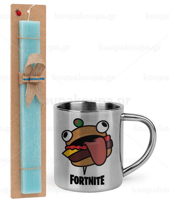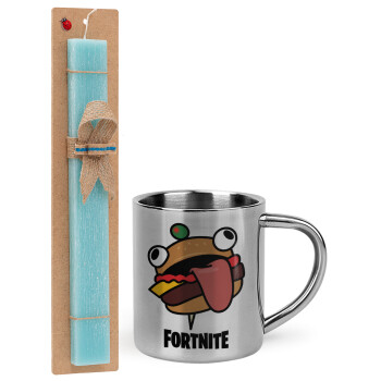 Fortnite Durr Burger, Easter Set, metallic thermal cup (300ml) & aromatic flat Easter candle (30cm) (TURQUOISE)