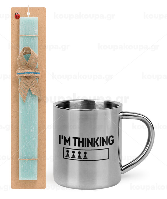 I'm thinking, Easter Set, metallic thermal cup (300ml) & aromatic flat Easter candle (30cm) (TURQUOISE)