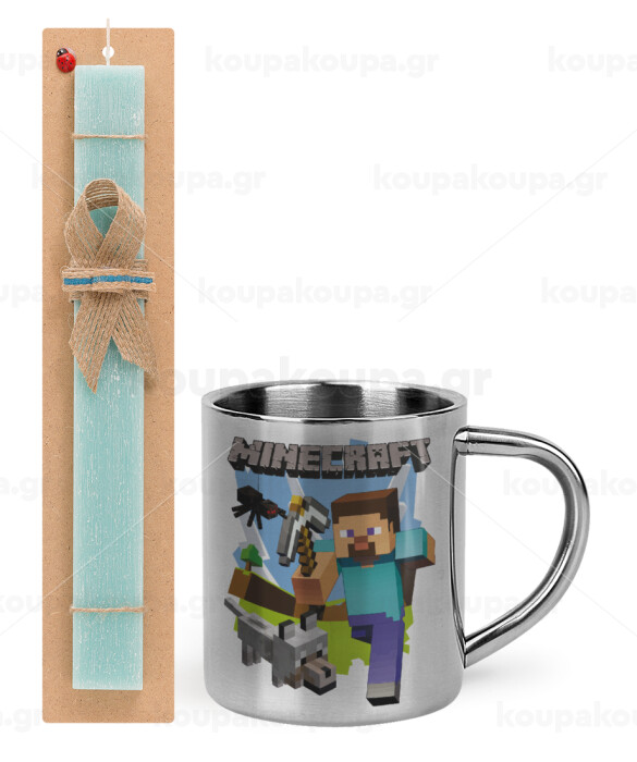 Minecraft Alex, Easter Set, metallic thermal cup (300ml) & aromatic flat Easter candle (30cm) (TURQUOISE)