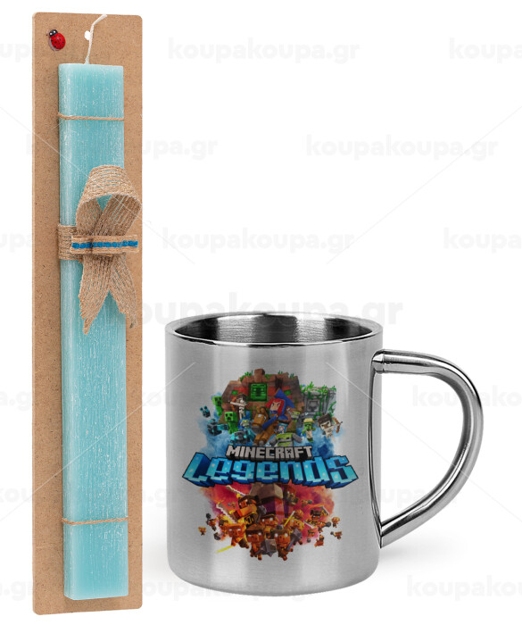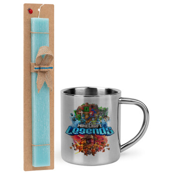 Minecraft legends, Easter Set, metallic thermal cup (300ml) & aromatic flat Easter candle (30cm) (TURQUOISE)