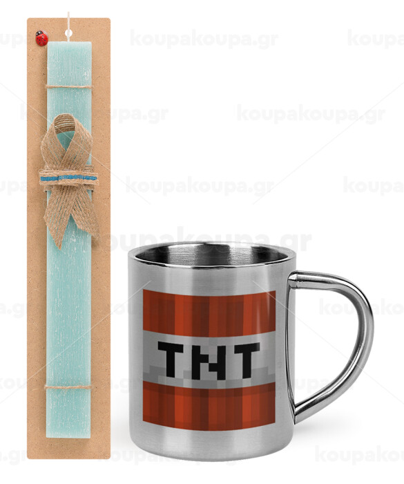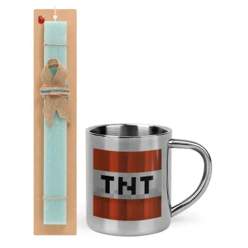 Minecraft TNT, Easter Set, metallic thermal cup (300ml) & aromatic flat Easter candle (30cm) (TURQUOISE)