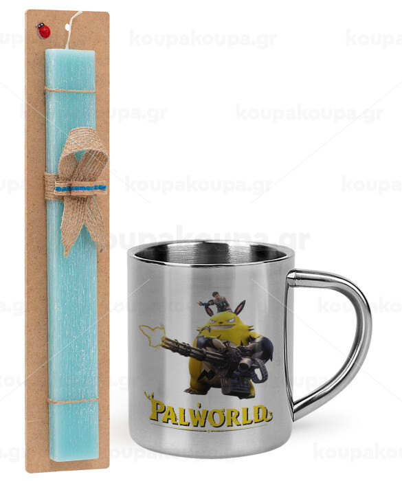 Palworld, Easter Set, metallic thermal cup (300ml) & aromatic flat Easter candle (30cm) (TURQUOISE)