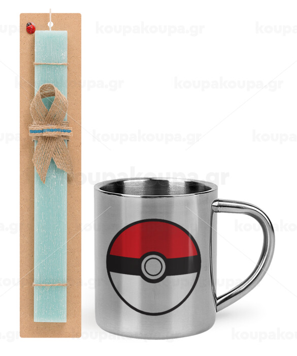 Pokemon ball, Easter Set, metallic thermal cup (300ml) & aromatic flat Easter candle (30cm) (TURQUOISE)