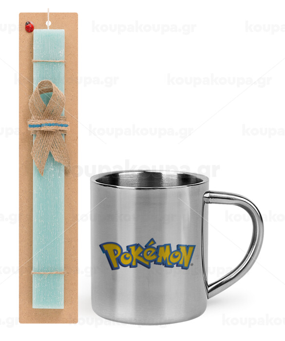 Pokemon, Easter Set, metallic thermal cup (300ml) & aromatic flat Easter candle (30cm) (TURQUOISE)