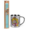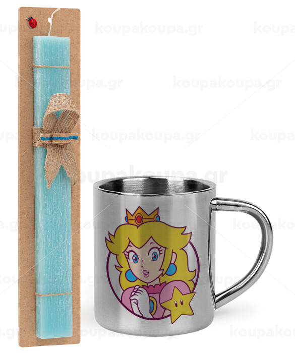 Princess Peach, Easter Set, metallic thermal cup (300ml) & aromatic flat Easter candle (30cm) (TURQUOISE)