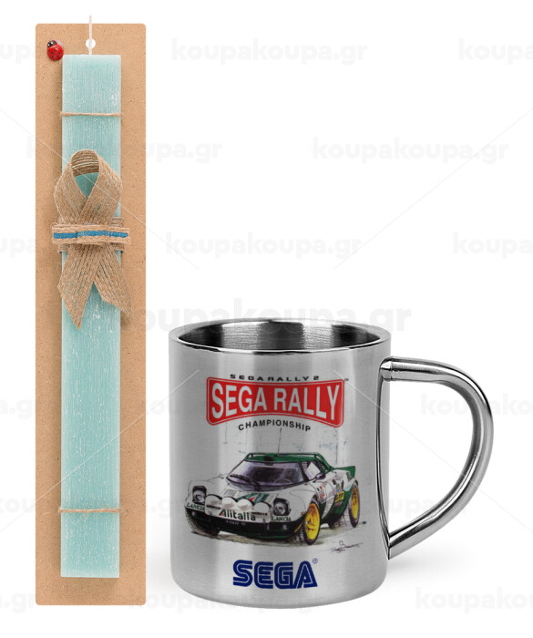 SEGA RALLY 2, Easter Set, metallic thermal cup (300ml) & aromatic flat Easter candle (30cm) (TURQUOISE)