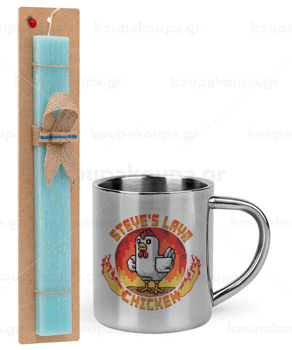 Steve's Lava Chicken, Easter Set, metallic thermal cup (300ml) & aromatic flat Easter candle (30cm) (TURQUOISE)