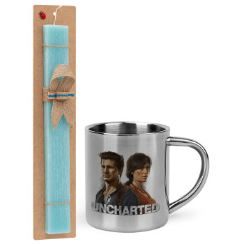 Uncharted, Easter Set, metallic thermal cup (300ml) & aromatic flat Easter candle (30cm) (TURQUOISE)