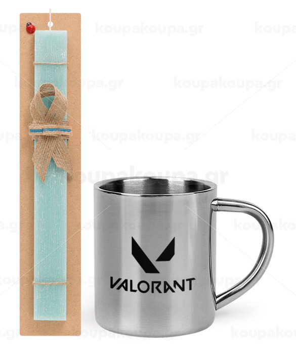 Valorant, Easter Set, metallic thermal cup (300ml) & aromatic flat Easter candle (30cm) (TURQUOISE)