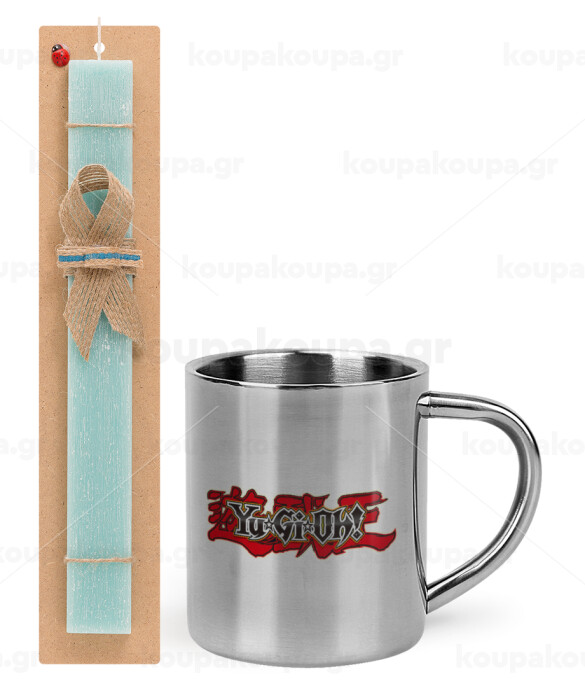 Yu-Gi-Oh, Easter Set, metallic thermal cup (300ml) & aromatic flat Easter candle (30cm) (TURQUOISE)