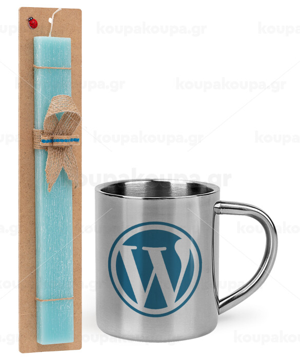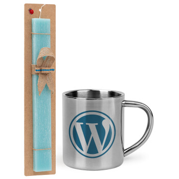 Wordpress, Easter Set, metallic thermal cup (300ml) & aromatic flat Easter candle (30cm) (TURQUOISE)