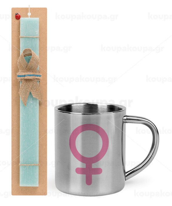 FEMALE, Easter Set, metallic thermal cup (300ml) & aromatic flat Easter candle (30cm) (TURQUOISE)