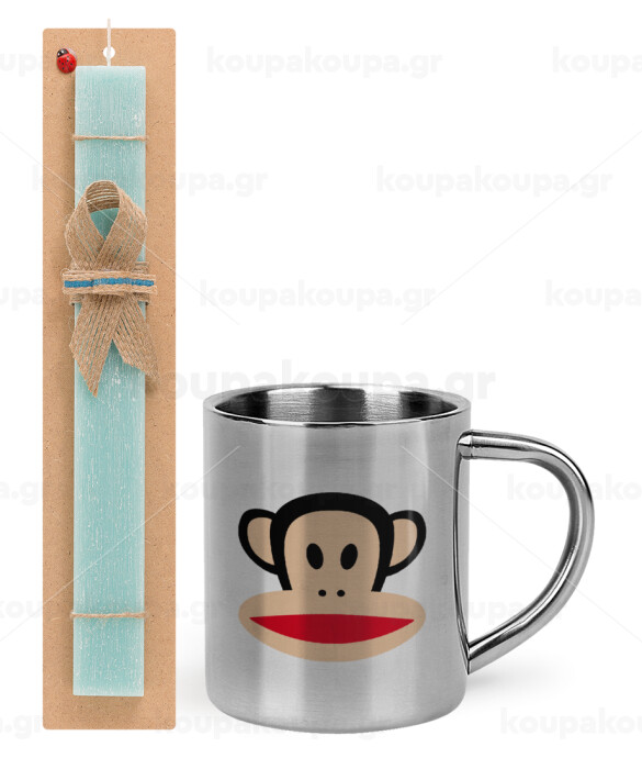 Monkey, Easter Set, metallic thermal cup (300ml) & aromatic flat Easter candle (30cm) (TURQUOISE)