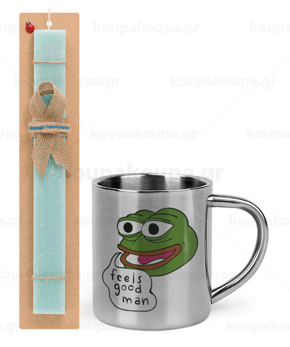 Pepe the frog, Easter Set, metallic thermal cup (300ml) & aromatic flat Easter candle (30cm) (TURQUOISE)