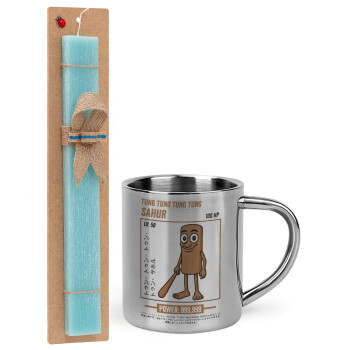 Tung Tung Tung Sahur, Easter Set, metallic thermal cup (300ml) & aromatic flat Easter candle (30cm) (TURQUOISE)