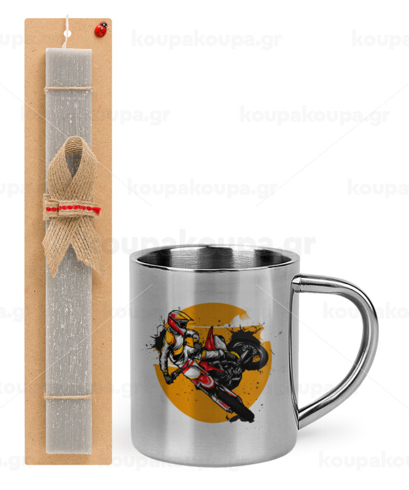 Motocross, Easter Set, metallic thermal cup (300ml) & Easter aromatic flat candle (30cm) (GRAY)
