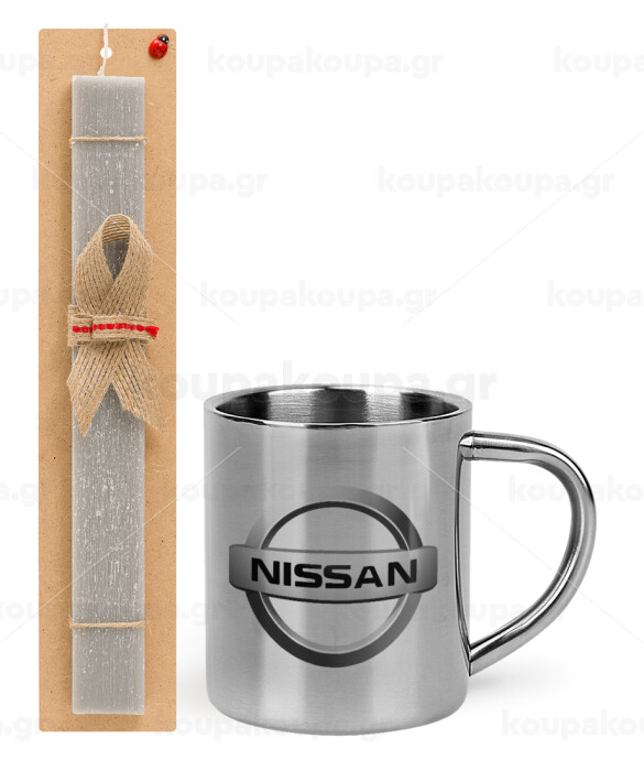 nissan, Easter Set, metallic thermal cup (300ml) & Easter aromatic flat candle (30cm) (GRAY)
