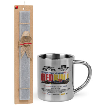 Sergio Perez - F1 Red Bull Racing, Easter Set, metallic thermal cup (300ml) & Easter aromatic flat candle (30cm) (GRAY)