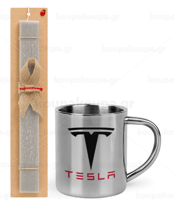 Tesla motors, Easter Set, metallic thermal cup (300ml) & Easter aromatic flat candle (30cm) (GRAY)