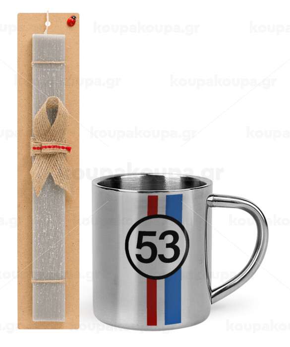 VW Herbie 53, Easter Set, metallic thermal cup (300ml) & Easter aromatic flat candle (30cm) (GRAY)